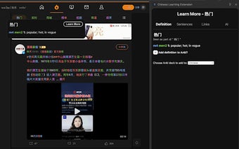 De Chinese Learning Extension is een gratis browserextensie die speciaal is ontworpen voor studenten van de Chinese taal. Deze extensie biedt verschillende hulpmiddelen om het leren van de taal te vergemakkelijken, waaronder kleurcodering van tonen, een pop-up woordenboek en integratie met Anki voor flashcard-creatie. De kleurcodering helpt gebruikers bij het onthouden van de juiste uitspraak en het onderscheiden van vergelijkbare karakters. Daarnaast kunnen gebruikers met de pop-up functie snel teksten vertalen en begrijpen, wat de leerervaring verbetert.